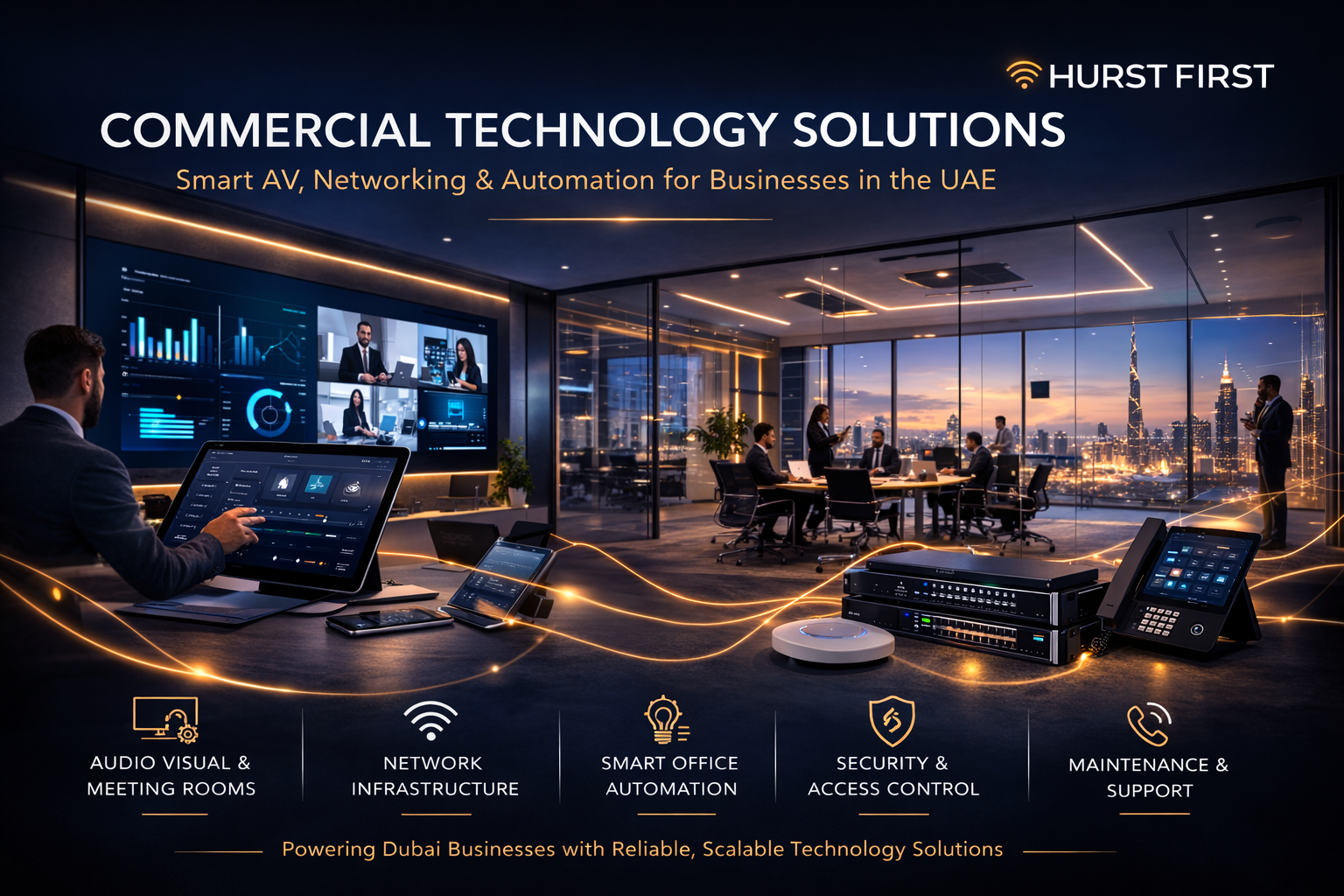 Reliable networks, meeting rooms, and AV systems for offices, retail, and hospitality across the UAE.